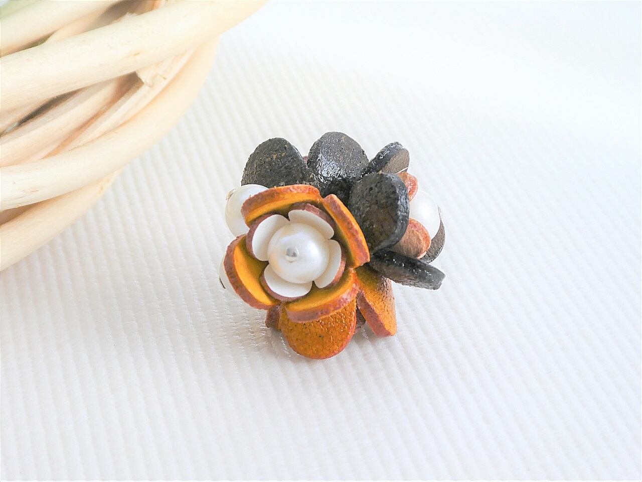 淡水パールを乗せてお花を作り、それを集めてブーケのように仕上げました。