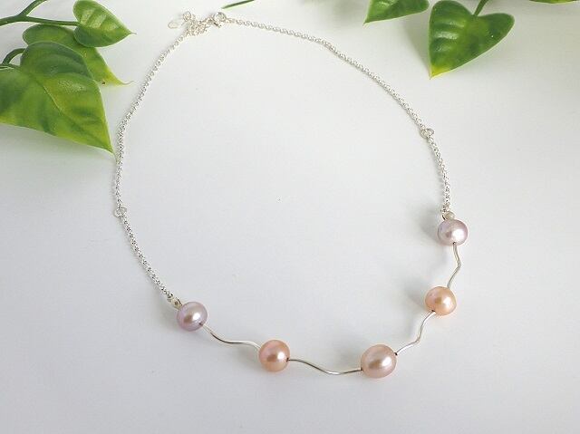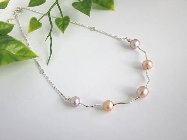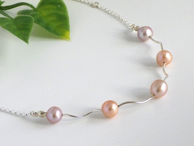 パステル調の色合いが素敵な天然色の淡水真珠です。